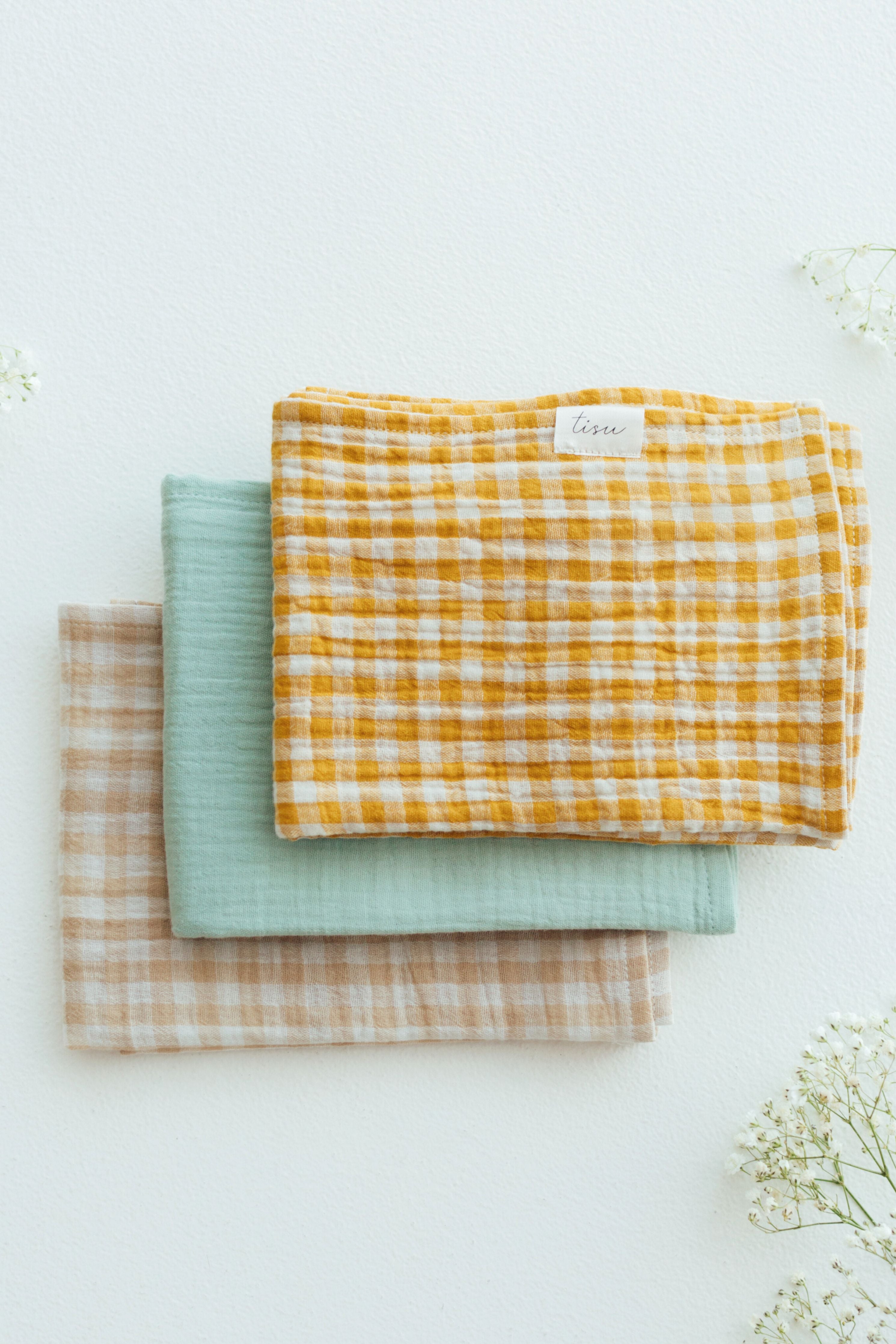 TISU harsopakkaus: Mustard Gingham + Pistachio + Beige Gingham