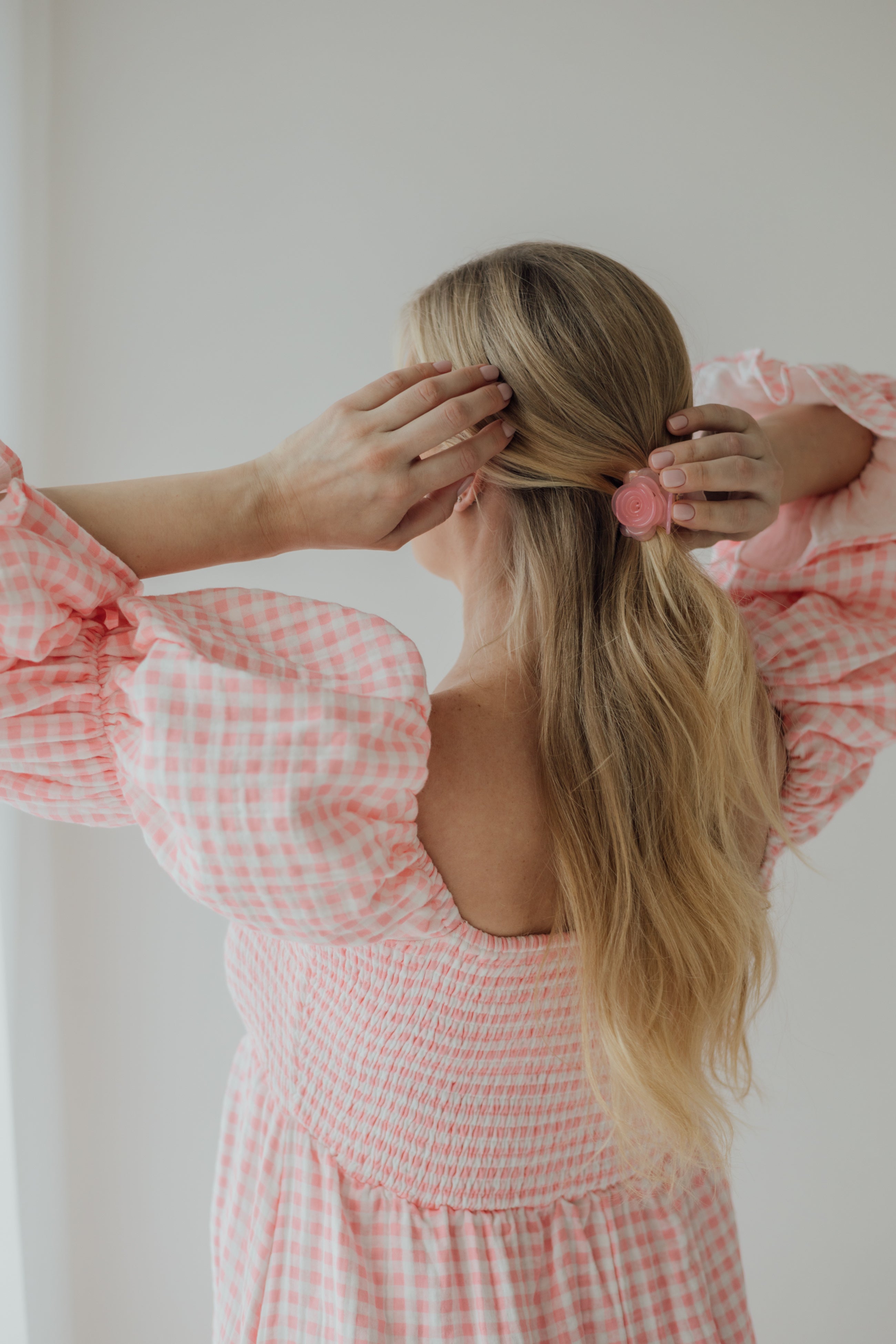 Mekon mukana tulee ylijäämäkankaasta valmistettu ruusu, jota voi käyttää niin mekkoon kiinnitettynä kuin vaikka hiuksissakin. Ruusut valmistuvat käsityönä virolaisten kehitysvammaisten nuorten käsissä.