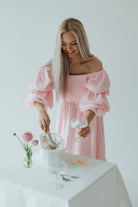 Upeasti laskeutuva ja hengittävä mekko on valmistettu unelmanpehmeästä musliinikankaasta.