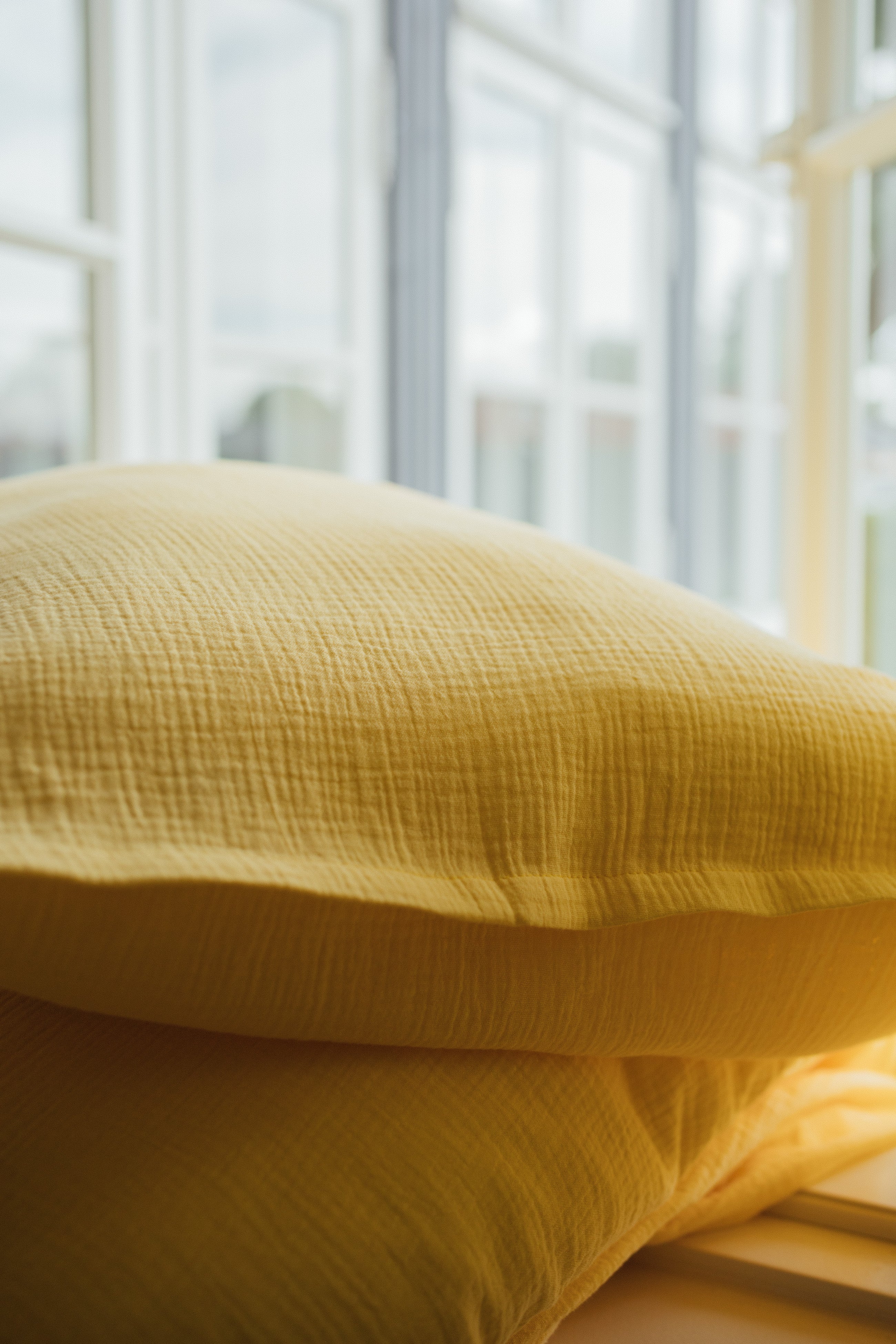 Musliinikangas on paitsi kaunis ja ajaton, myös erittäin kestävä – se säilyttää pehmeytensä ja raikkaan ilmeensä toistuvissakin pesuissa. Lakanat voidaan pestä 40 °C tai 60 °C asteessa saman sävyisten tekstiilien kanssa ja kuivata kuivausrummussa.