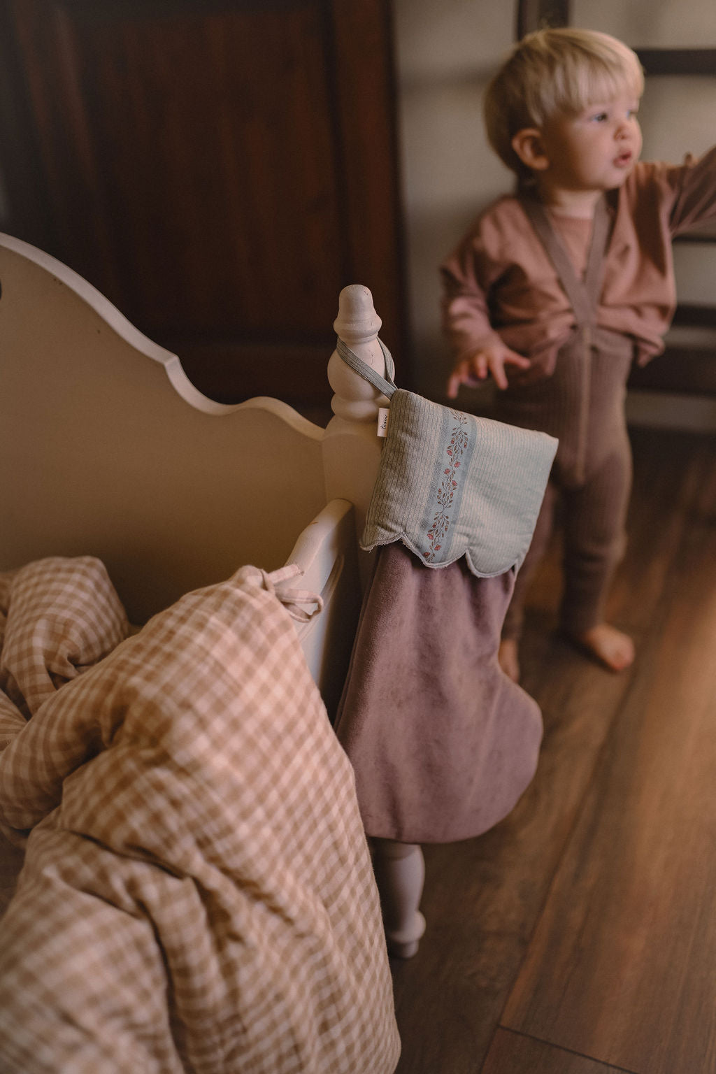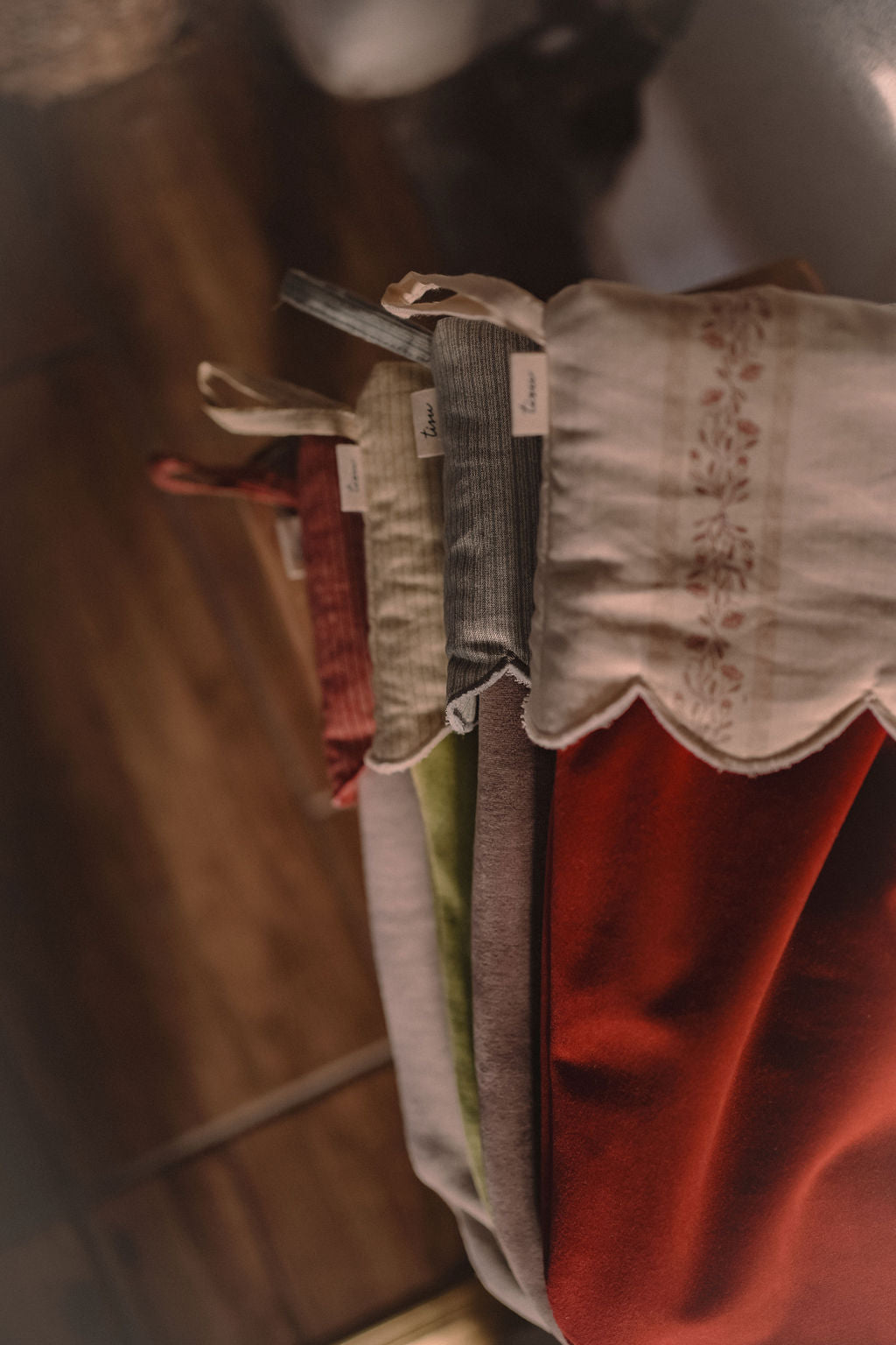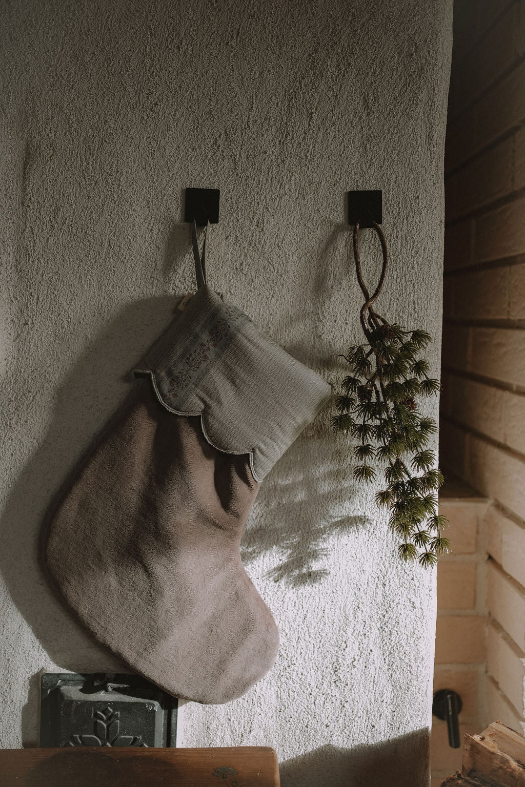 Jokainen TISU:n joulusukka valmistetaan pehmeästä sametista ja laadukkaasta japanilaisesta puuvillasta. Tukevan ripustuslenkin ansiosta sukka on helppo kiinnittää juuri oikealle paikalle.