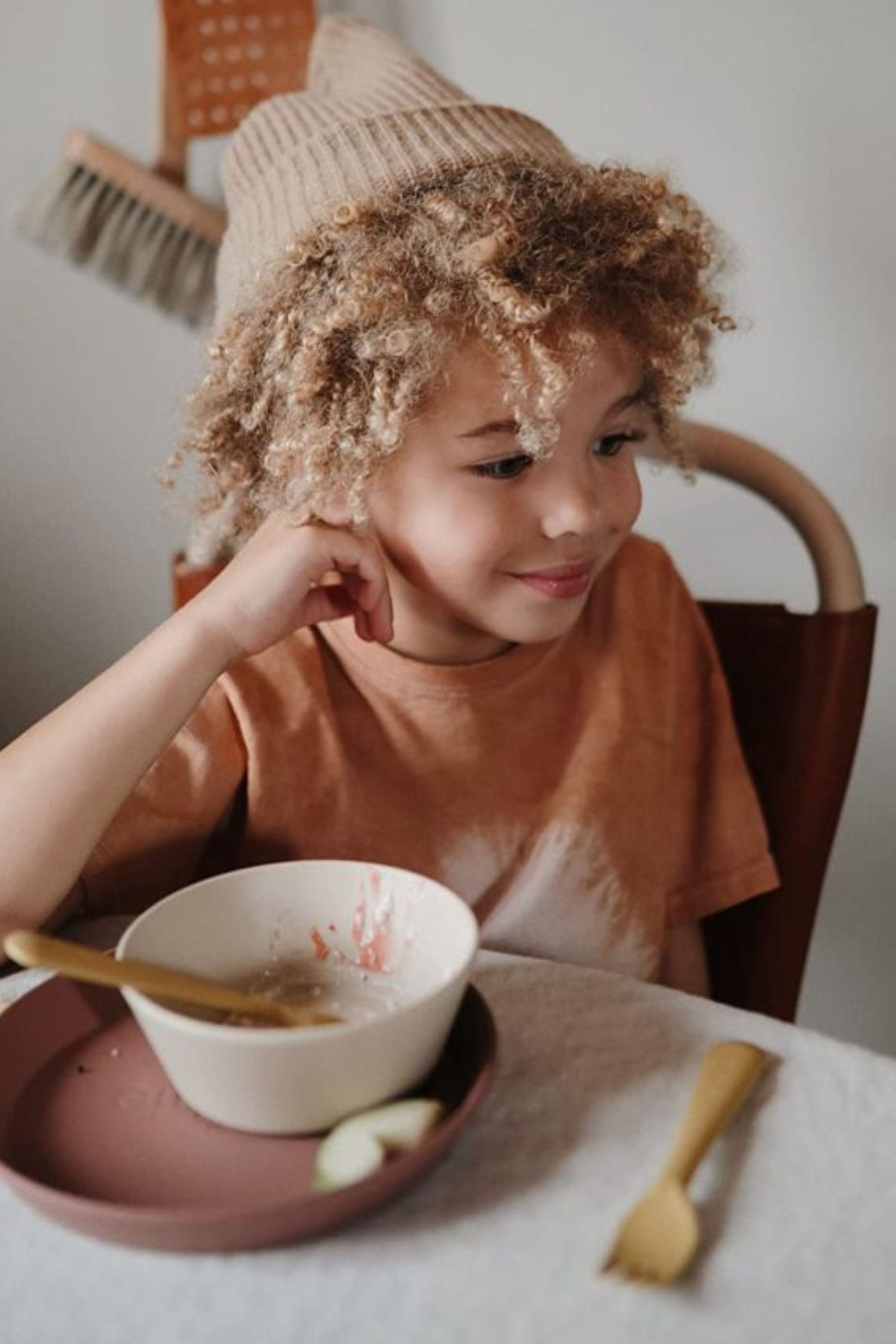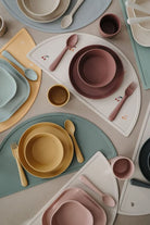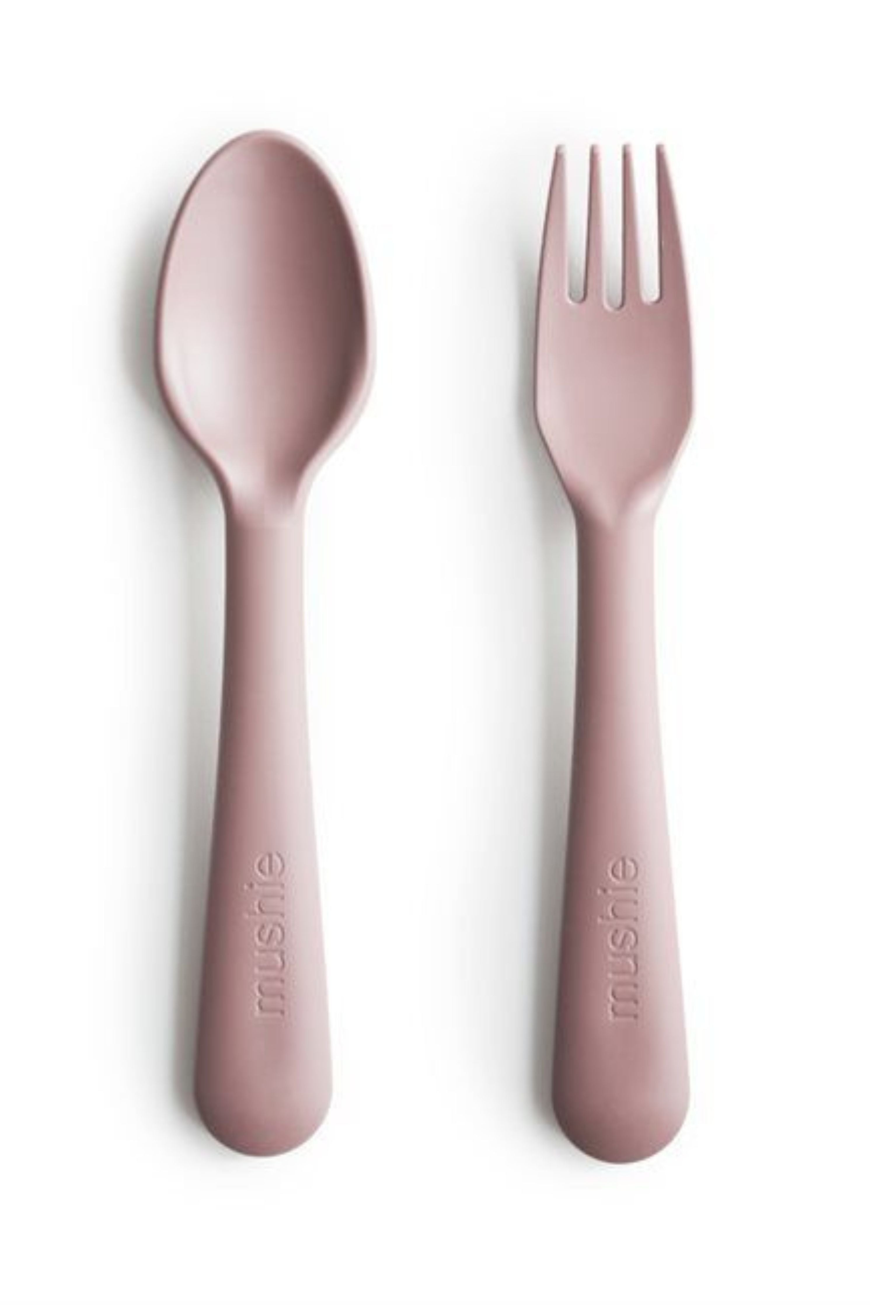 Pehmeillä väreillä ja puhtaalla muotoilulla varustettu haarukka- ja lusikasetti on yksinkertainen ja tyylikäs. Juuri sopiva lapsen käteen.