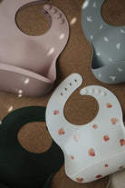 Mushie ruokalaput ovat suunniteltu Ruotsissa. Niissä on pyöristetty pääntie ja helppo kiinnitys niskan takana.