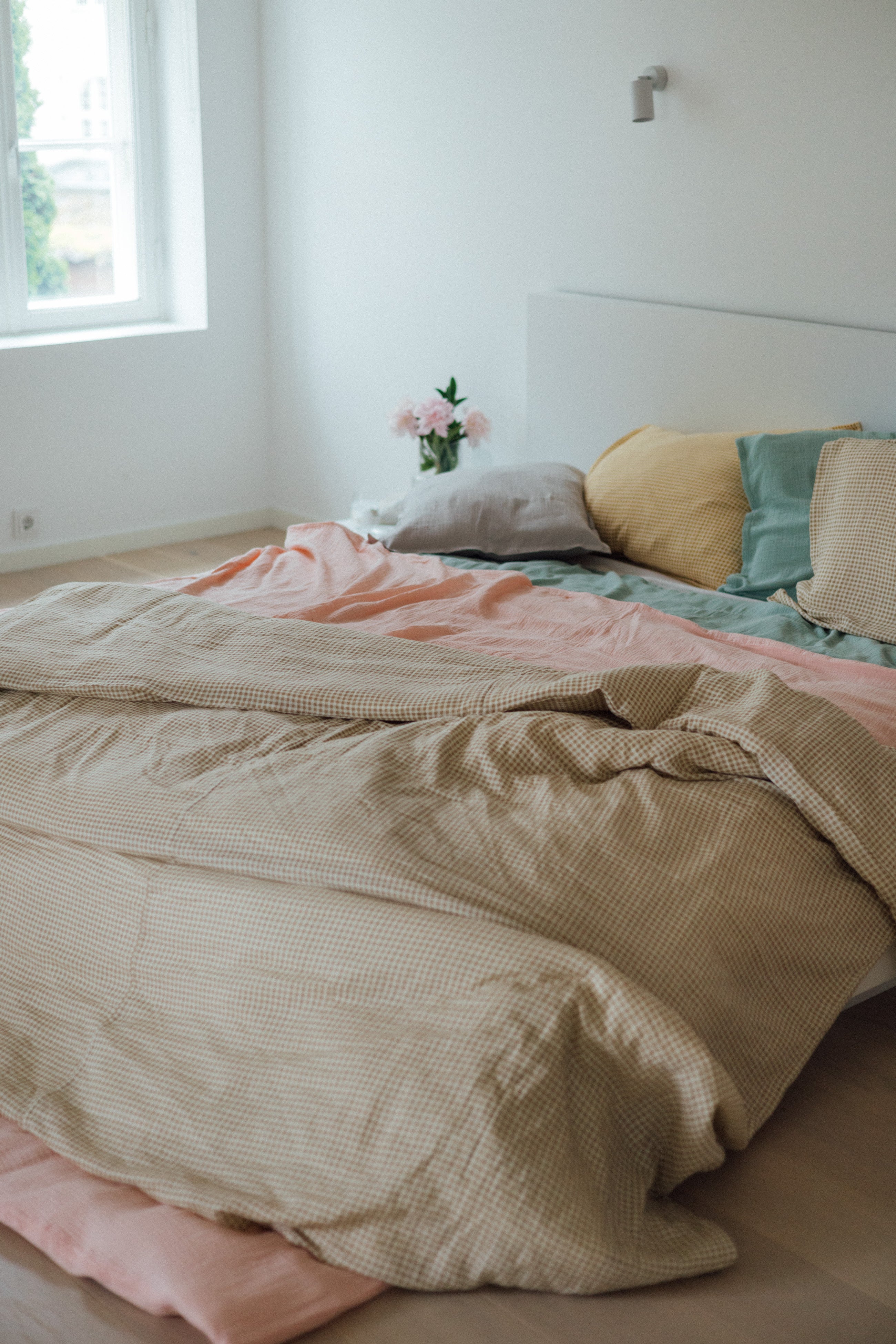 Musliinikangas on paitsi kaunis ja ajaton, myös erittäin kestävä – se säilyttää pehmeytensä ja raikkaan ilmeensä toistuvissakin pesuissa. Lakanat voidaan pestä 40 °C tai 60 °C asteessa saman sävyisten tekstiilien kanssa ja kuivata kuivausrummussa.
