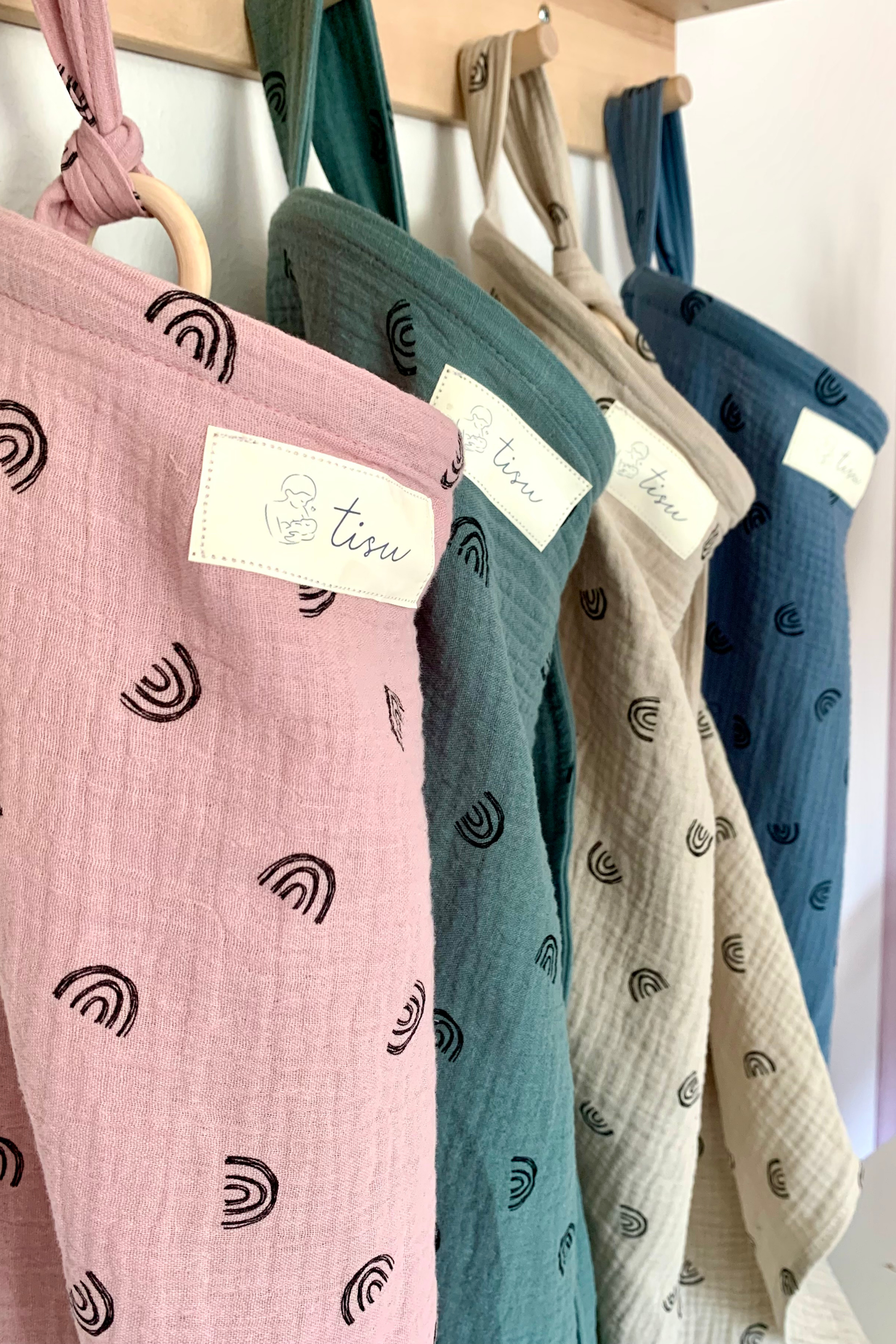 TISU-imetyssuojat valmistetaan käsityönä musliinipuuvillasta, joka on ilmava ja kevyt myös kesän lämmössä. TISU toimii myös erinomaisena vaunu-/kaukaloverhona. Vaunuverho suojaa nukkuvaa vauvaa tuulelta, liikenteen melulta sekä saasteilta. Vaunuverho toimii myös aurinkosuojana. Vaunuverhon kanssa kannattaa huolehtia riittävästä ilmanvaihdosta.