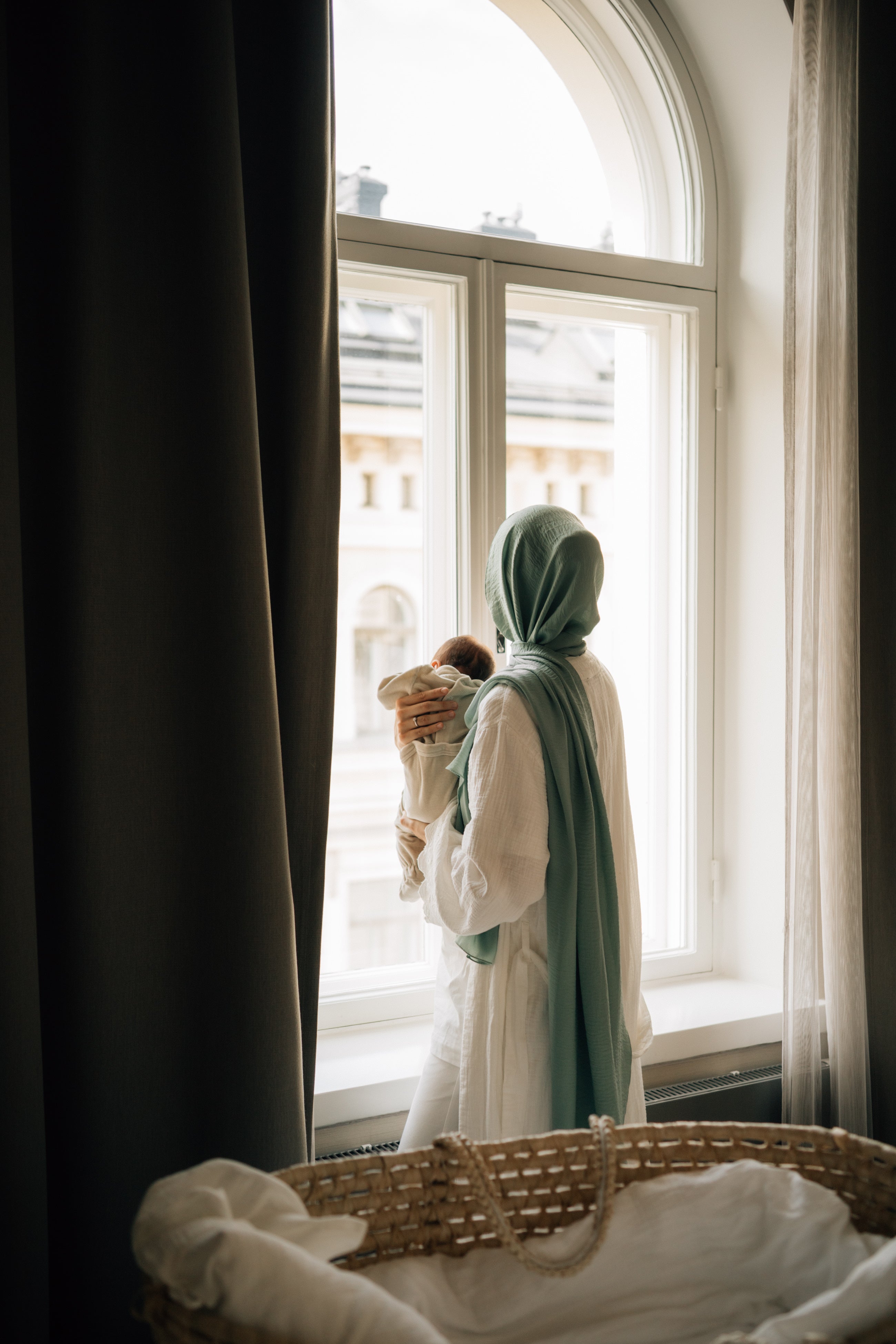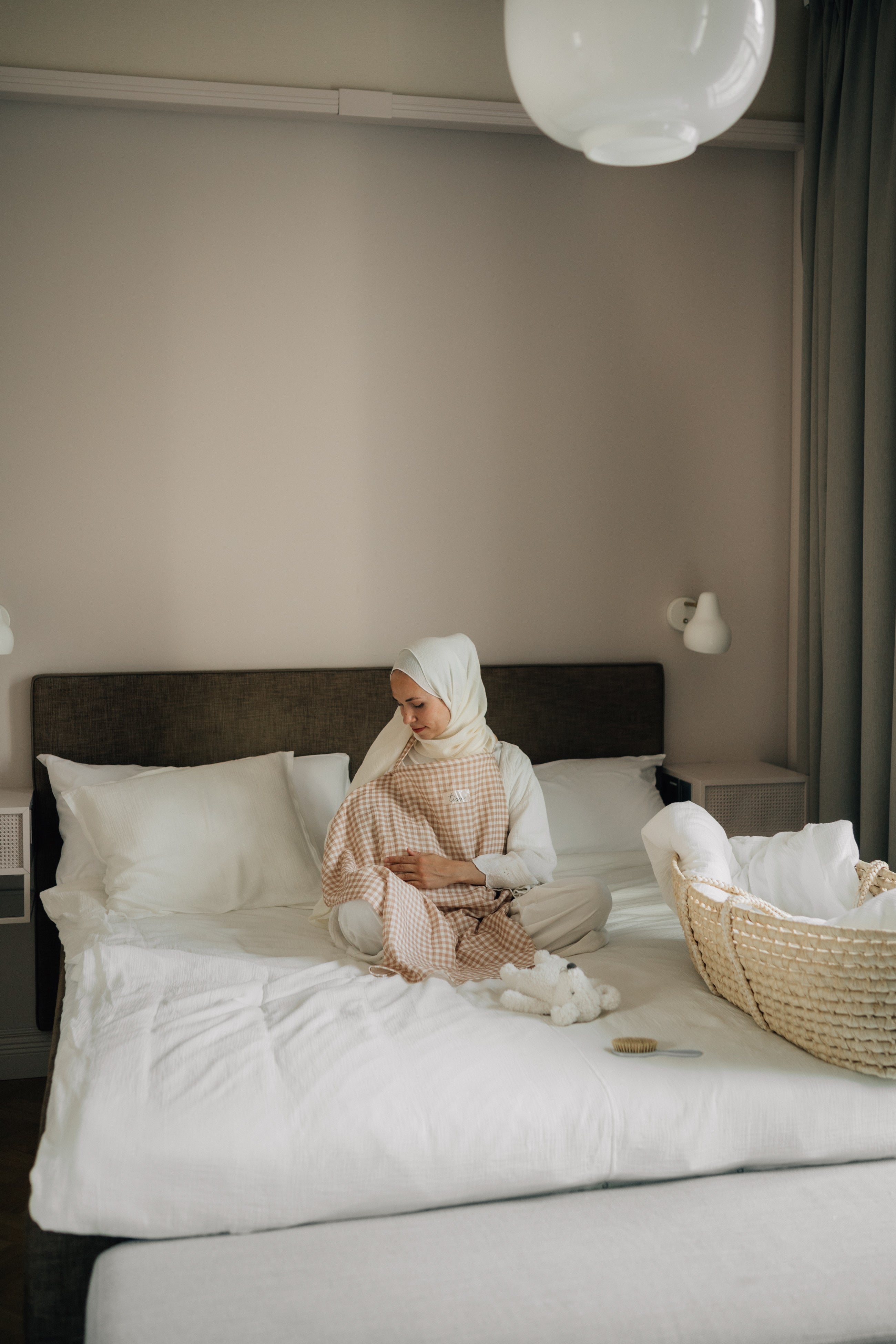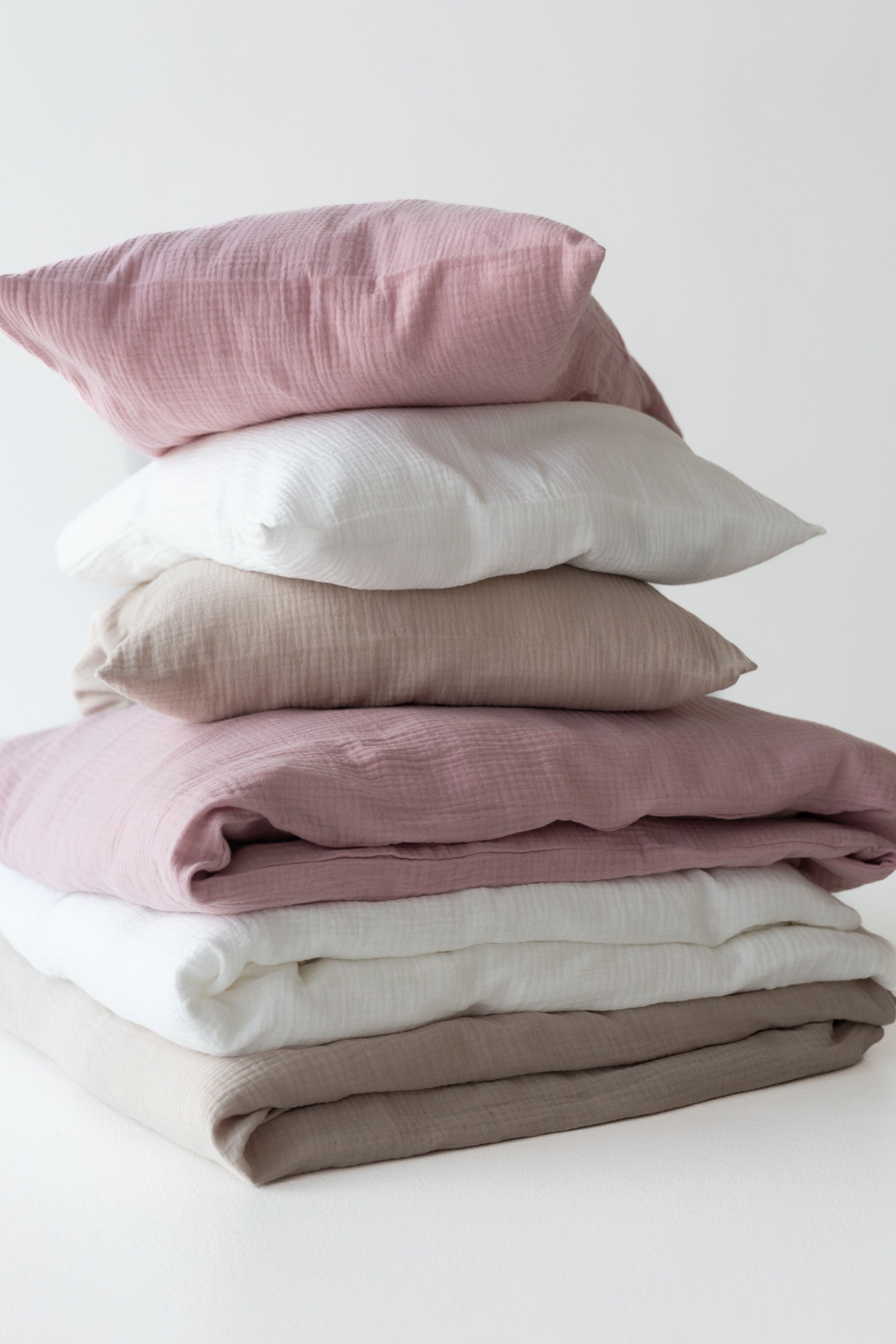 ☁️ Mini: Pussilakana 85 x 125 cm. Tyynyliina: 40 x 60 cm (pussilakana sopii kooltaan äitiyspakkauksen peittoon)