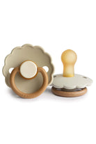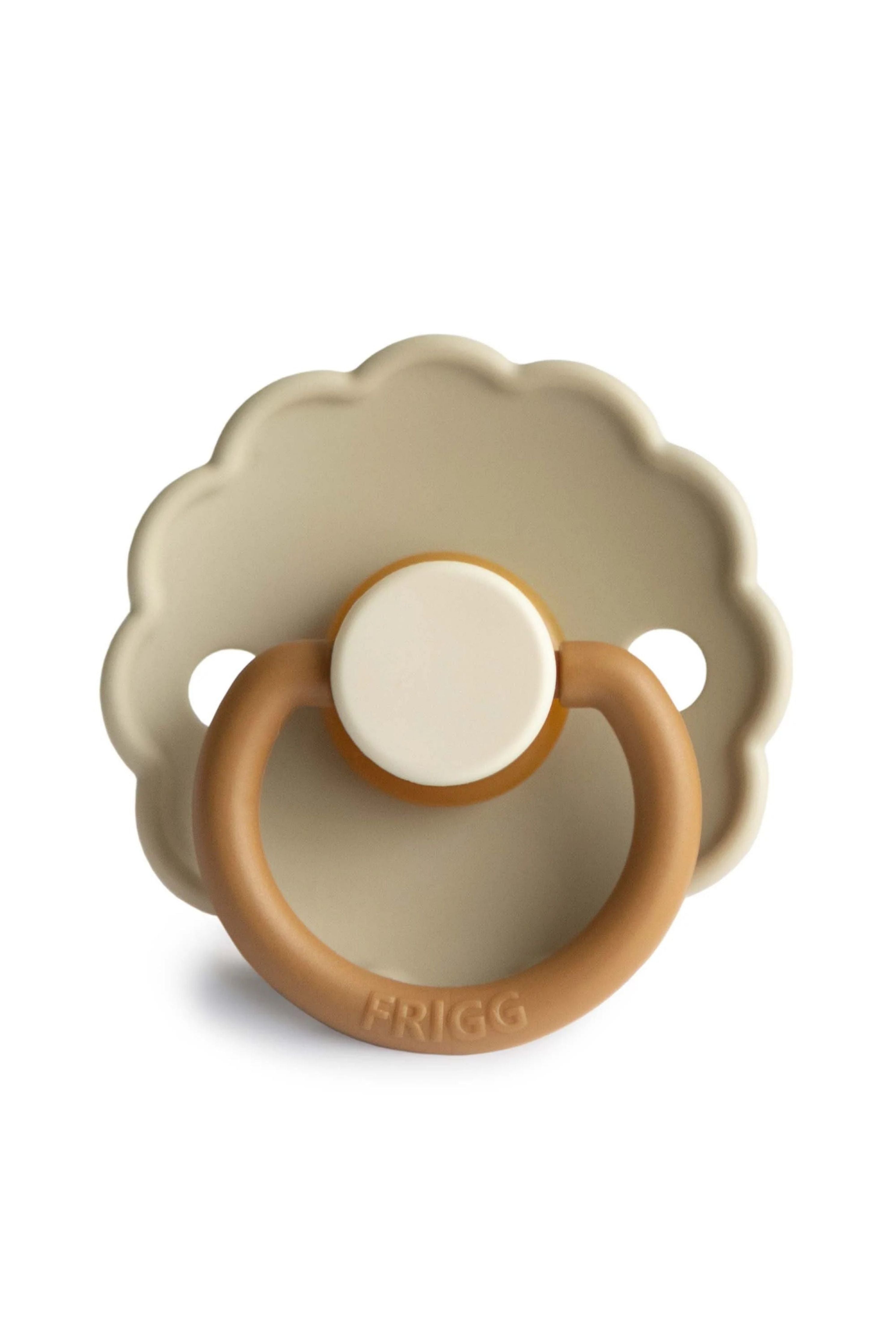 Tanskalaisen FRIGG-merkin piparkakkureunainen tutti luonnonkumisella tuttiosalla. Tutin muoto on suunniteltu pitämään sen pois lapsen herkiltä kasvoilta. Ilma-aukot ja kahva suojaavat lasta tukehtumisvaaralta. Tutit täyttävät tiukat turvallisuusvaatimukset. Jokainen tutti on veto- ja tyhjiötestattu ja ne ovat BPA-, PVC- ja ftalaattivapaita.