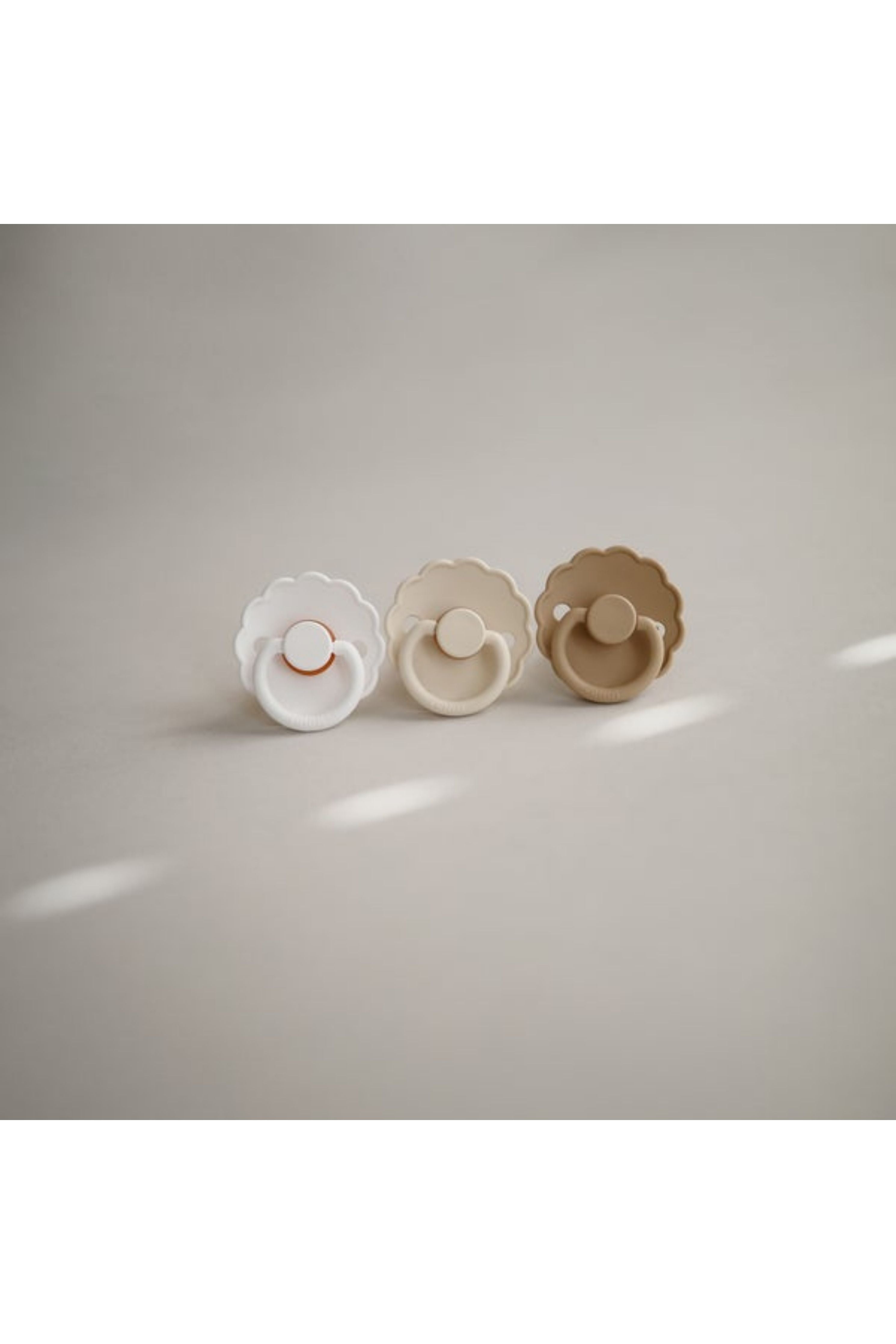 Tanskalaisen FRIGG-merkin piparkakkureunainen tutti luonnonkumisella tuttiosalla. Tutin muoto on suunniteltu pitämään sen pois lapsen herkiltä kasvoilta. Ilma-aukot ja kahva suojaavat lasta tukehtumisvaaralta. Tutit täyttävät tiukat turvallisuusvaatimukset. Jokainen tutti on veto- ja tyhjiötestattu ja ne ovat BPA-, PVC- ja ftalaattivapaita.