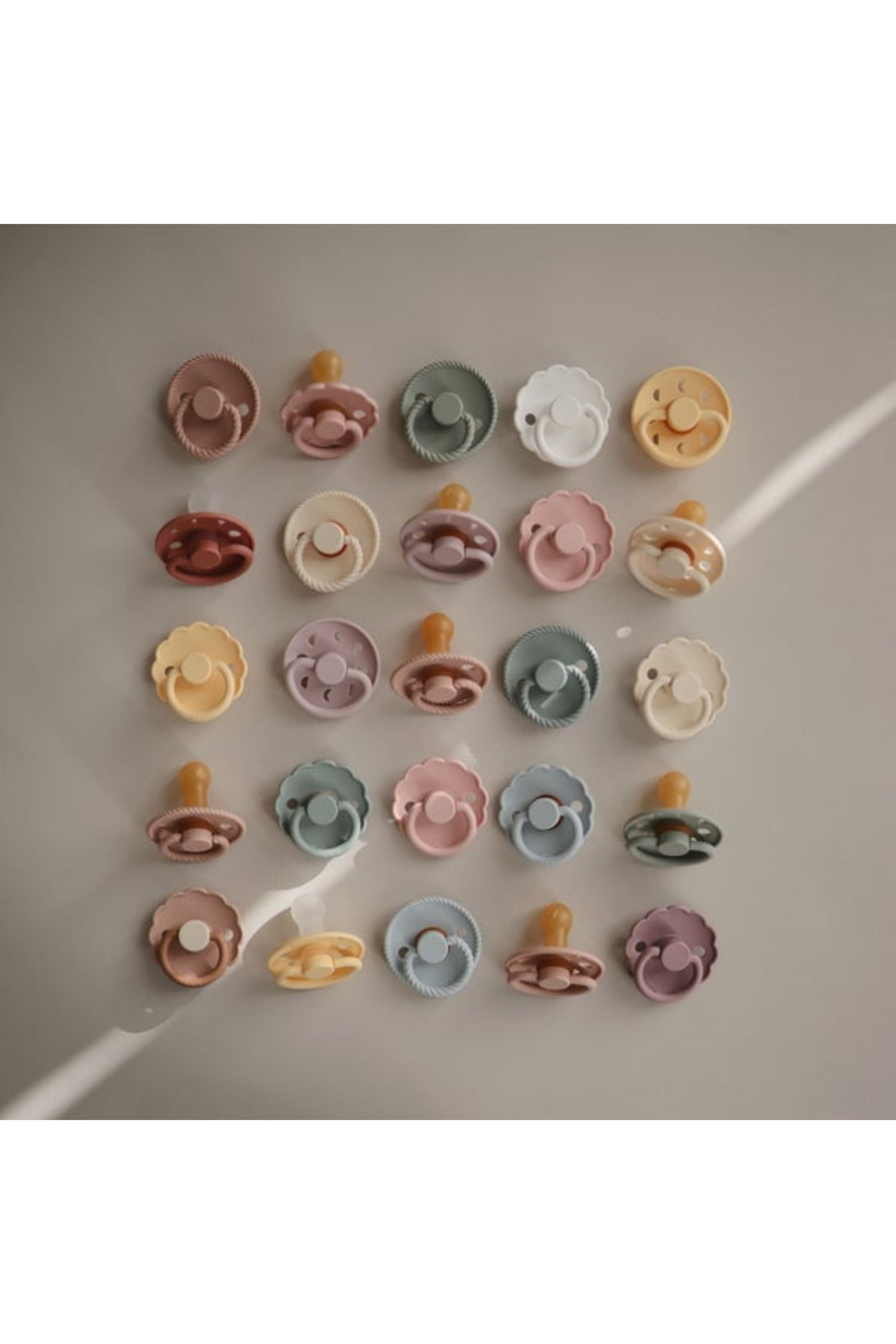 Tanskalaisen FRIGG-merkin piparkakkureunainen tutti luonnonkumisella tuttiosalla. Tutin muoto on suunniteltu pitämään sen pois lapsen herkiltä kasvoilta. Ilma-aukot ja kahva suojaavat lasta tukehtumisvaaralta. Tutit täyttävät tiukat turvallisuusvaatimukset. Jokainen tutti on veto- ja tyhjiötestattu ja ne ovat BPA-, PVC- ja ftalaattivapaita.