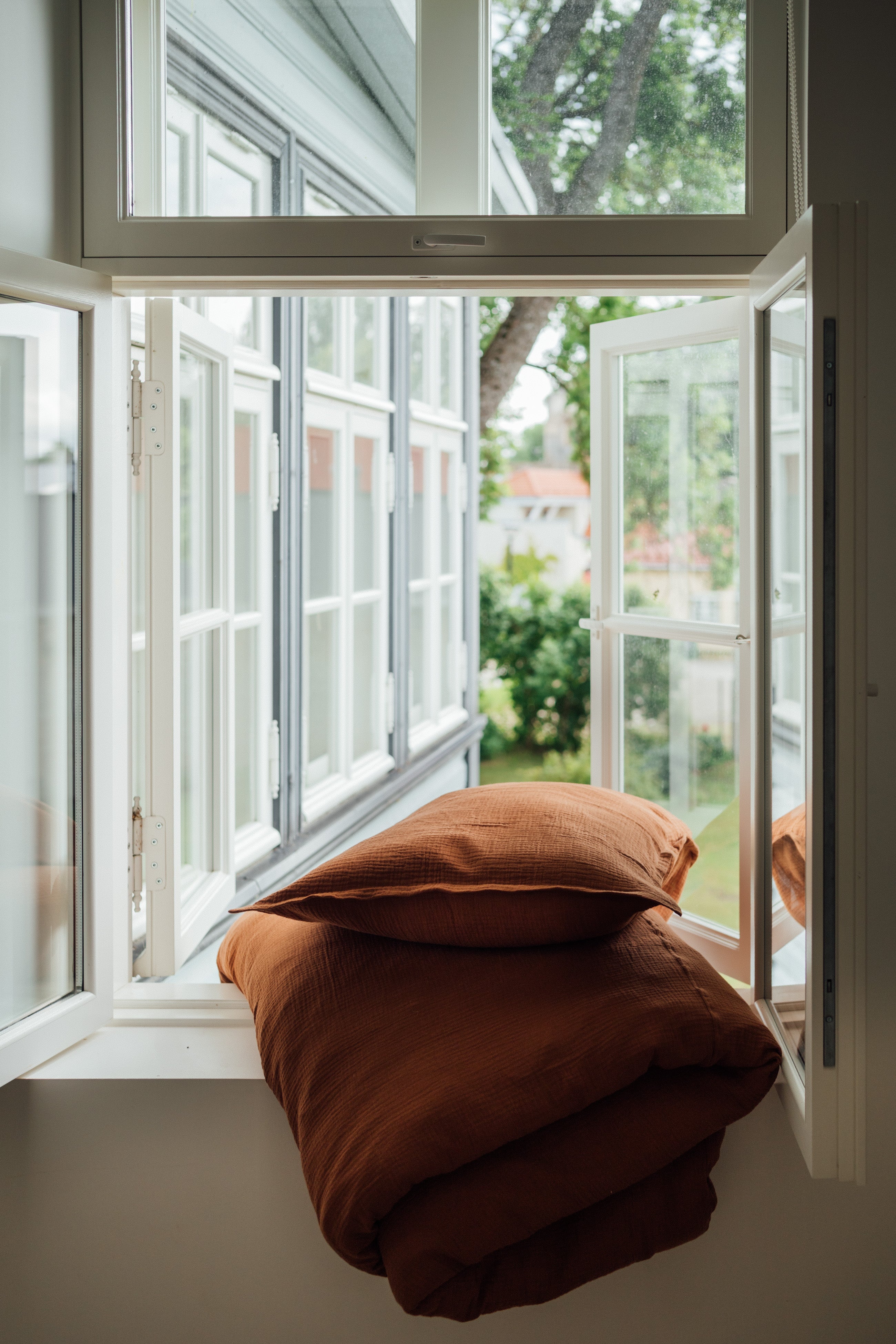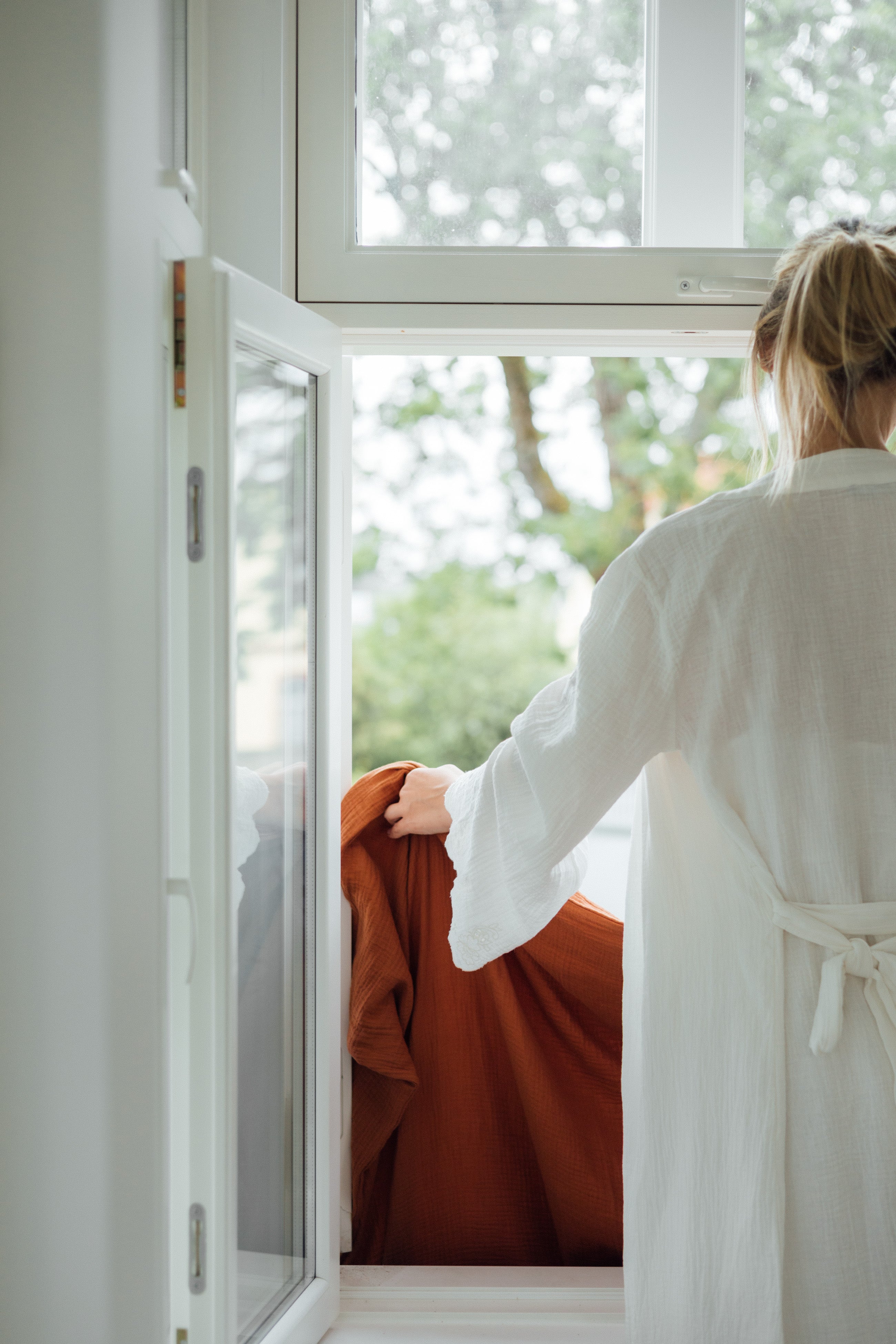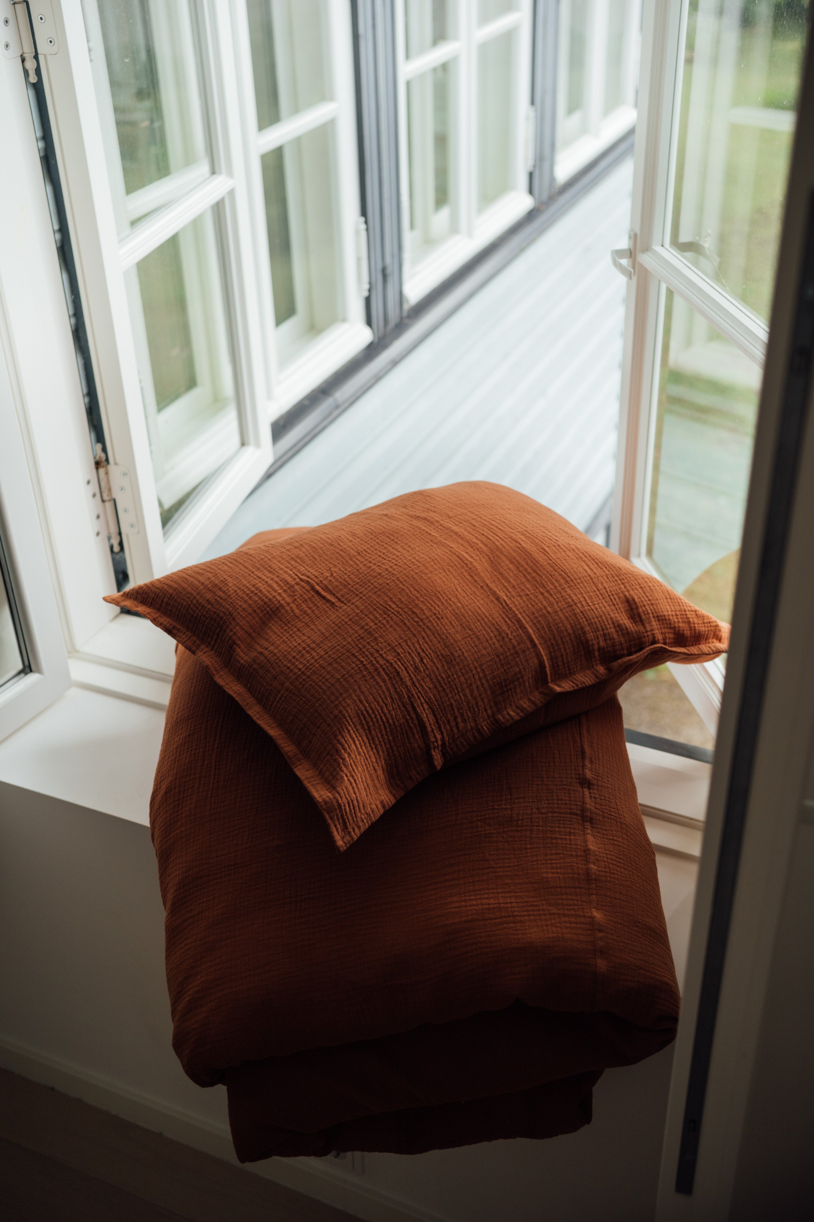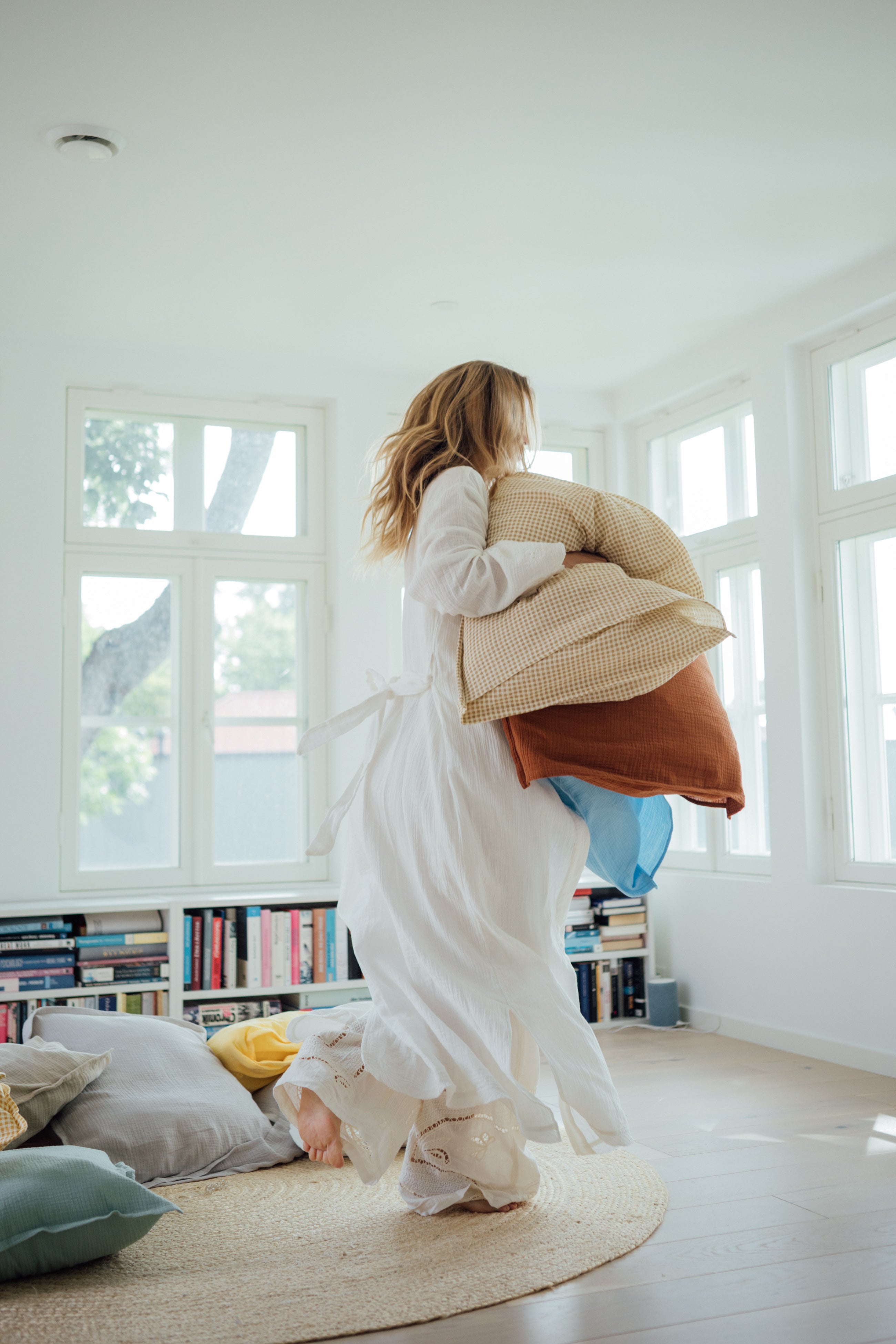 Musliinikangas on paitsi kaunis ja ajaton, myös erittäin kestävä – se säilyttää pehmeytensä ja raikkaan ilmeensä toistuvissakin pesuissa. Lakanat voidaan pestä 40 °C tai 60 °C asteessa saman sävyisten tekstiilien kanssa ja kuivata kuivausrummussa.