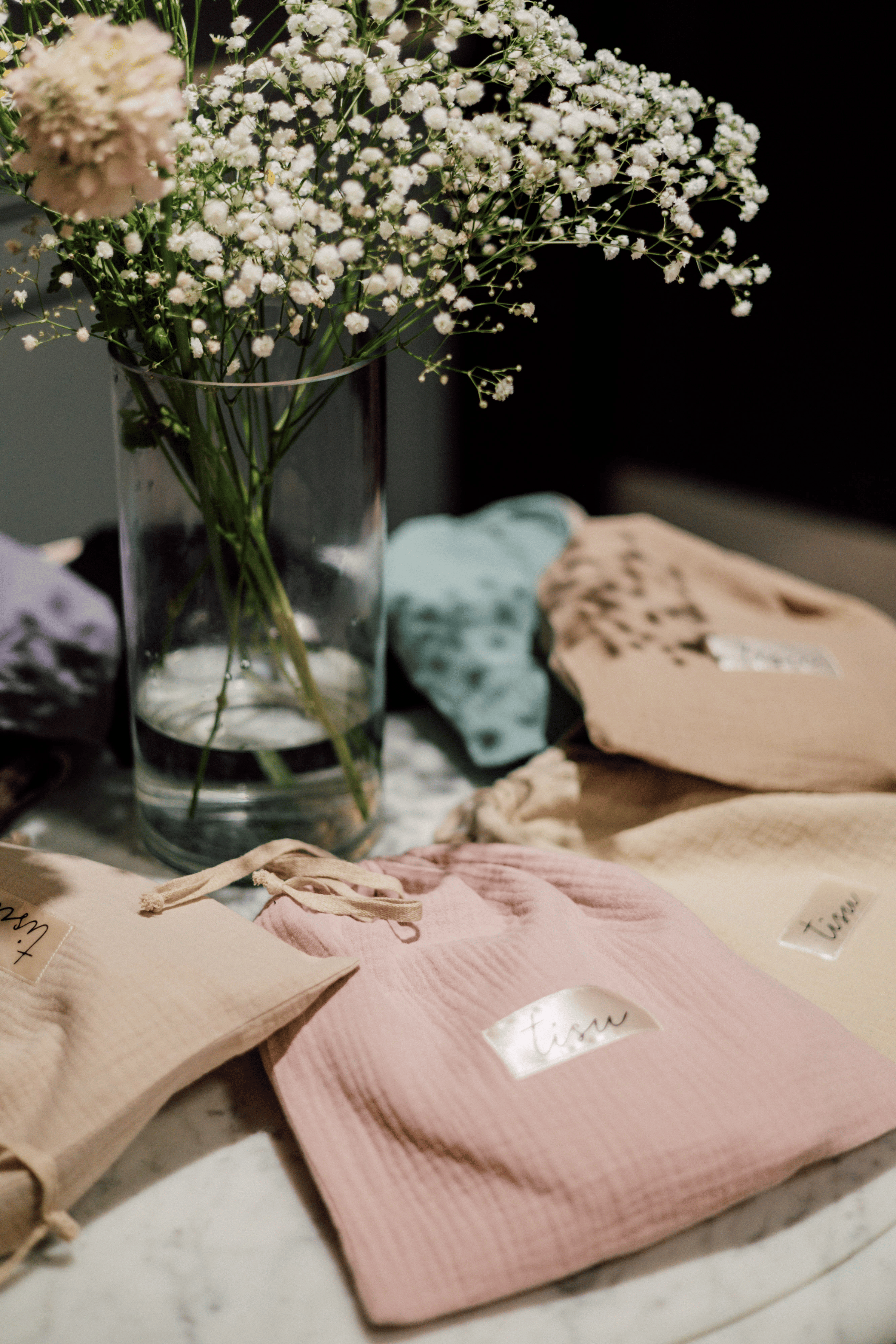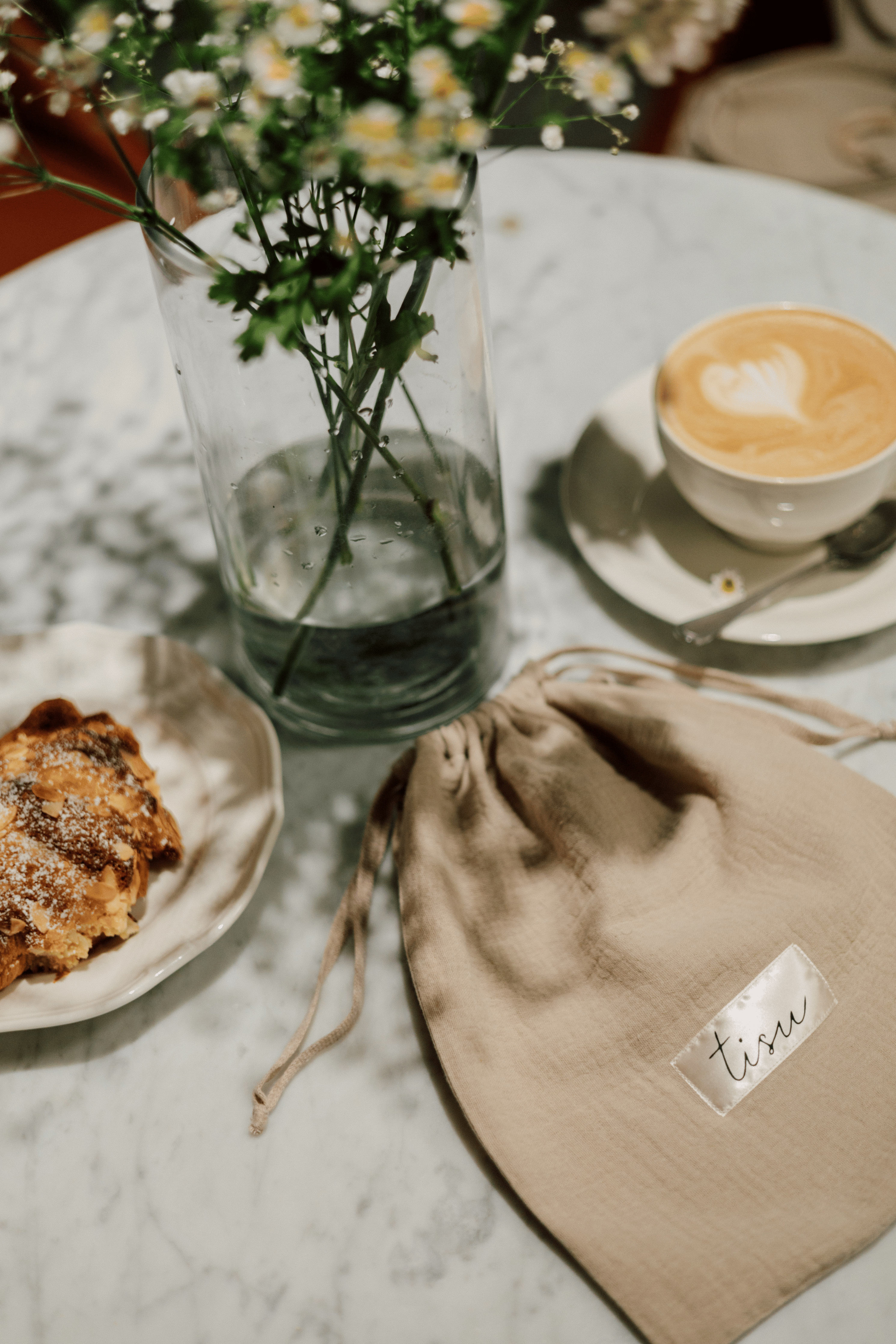 Suussa oleva kaksipuolinen kiristys varmistaa, että pussi pysyy napakasti suljettuna ja sisältö turvallisesti tallessa. Helppokäyttöinen ja monikäyttöinen pussi tuo järjestystä arkeen kauniilla ja huolettomalla tavalla.