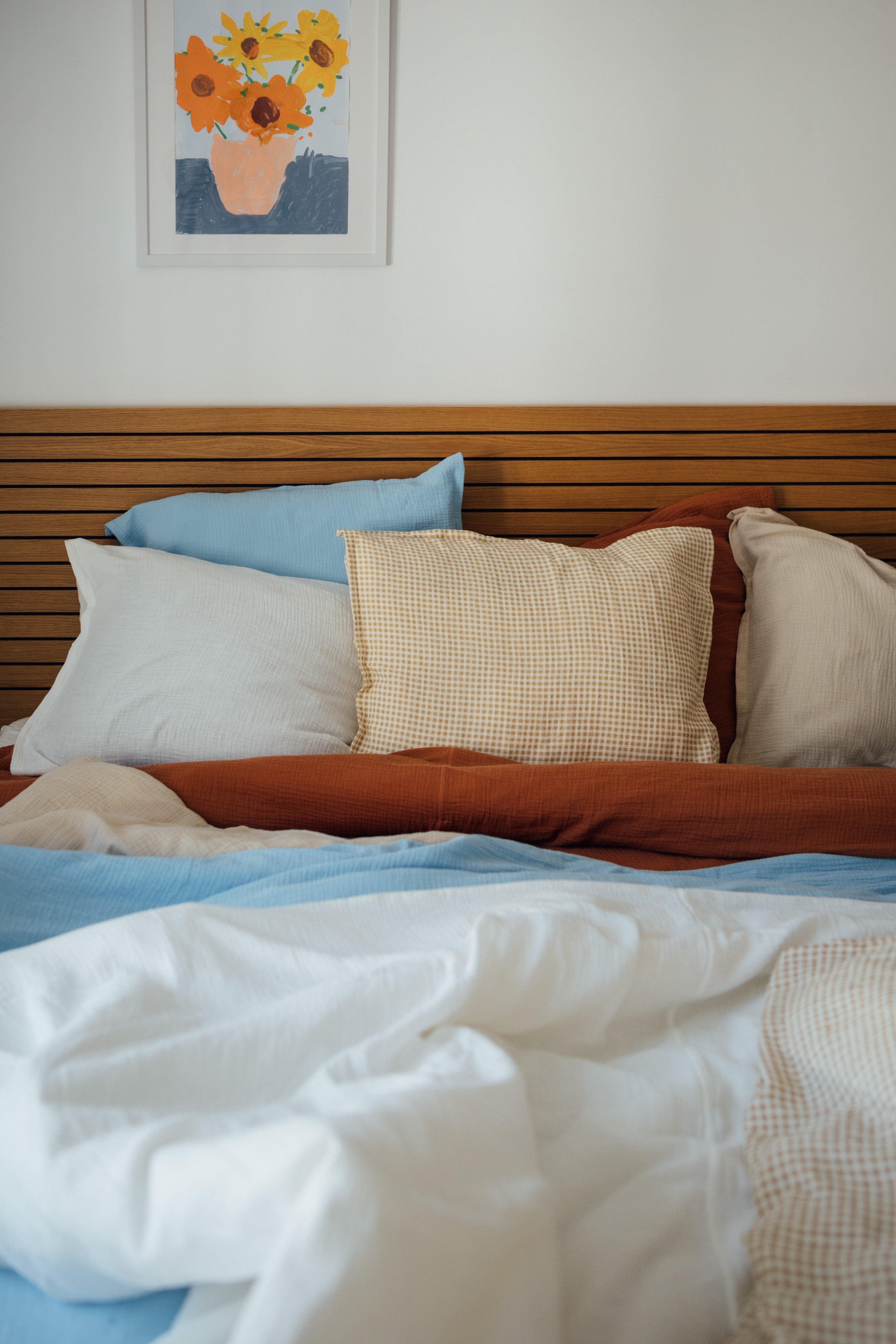 Tuo unelmainen pehmeys koko perheen uniin TISU:n musliinivuodevaatteilla! Kevyt ja hengittävä musliinikangas on täydellinen valinta herkälle iholle – niin vauvalle kuin aikuiselle. Ilmava ja luonnollisesti kreppimäinen pinta tuntuu ihanalta ihoa vasten eikä vaadi silitystä, vaan on heti käyttövalmis pesun ja kuivaamisen jälkeen.