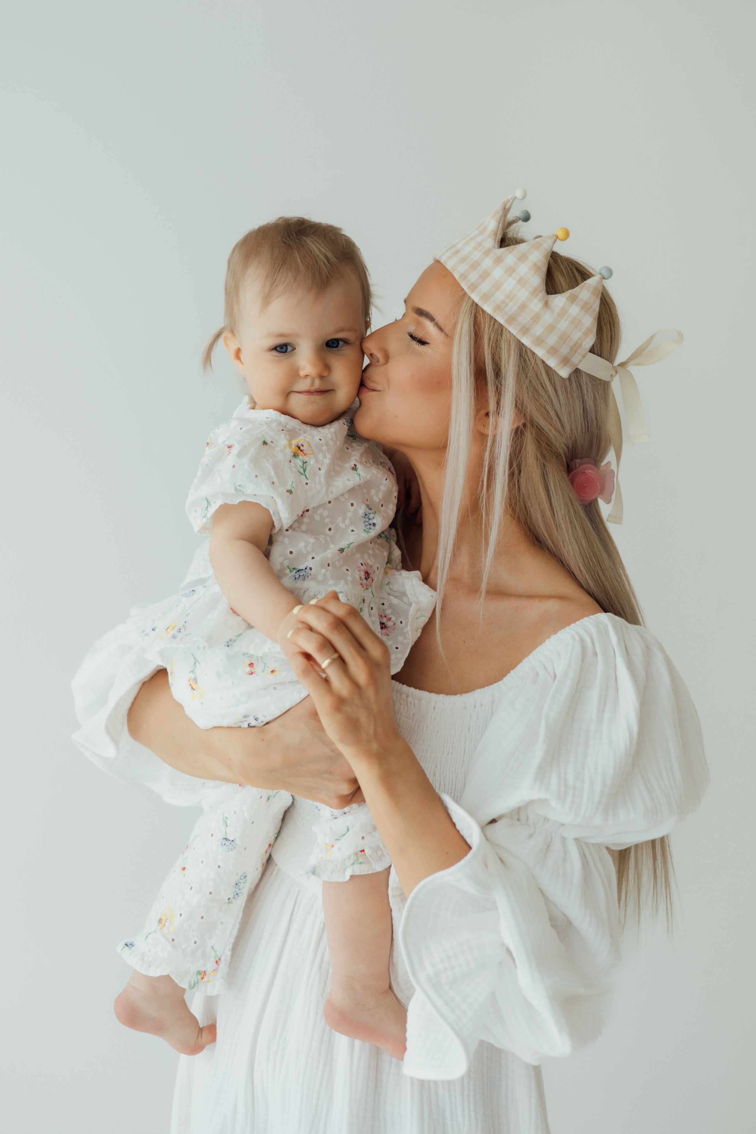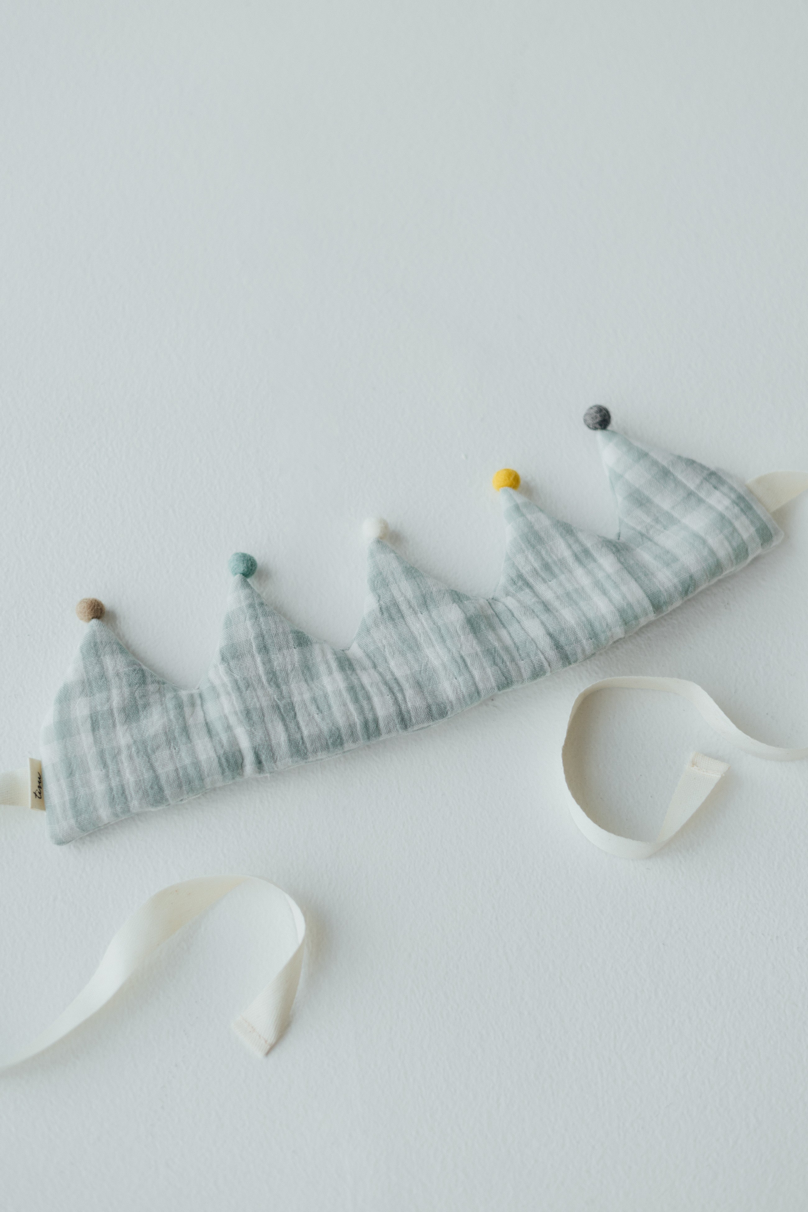 TISU:n kaunis ja kevyt musliinikankaasta valmistettu kruunu on täydellinen prinsessalle tai prinssille, juhlaan tai arkeen.