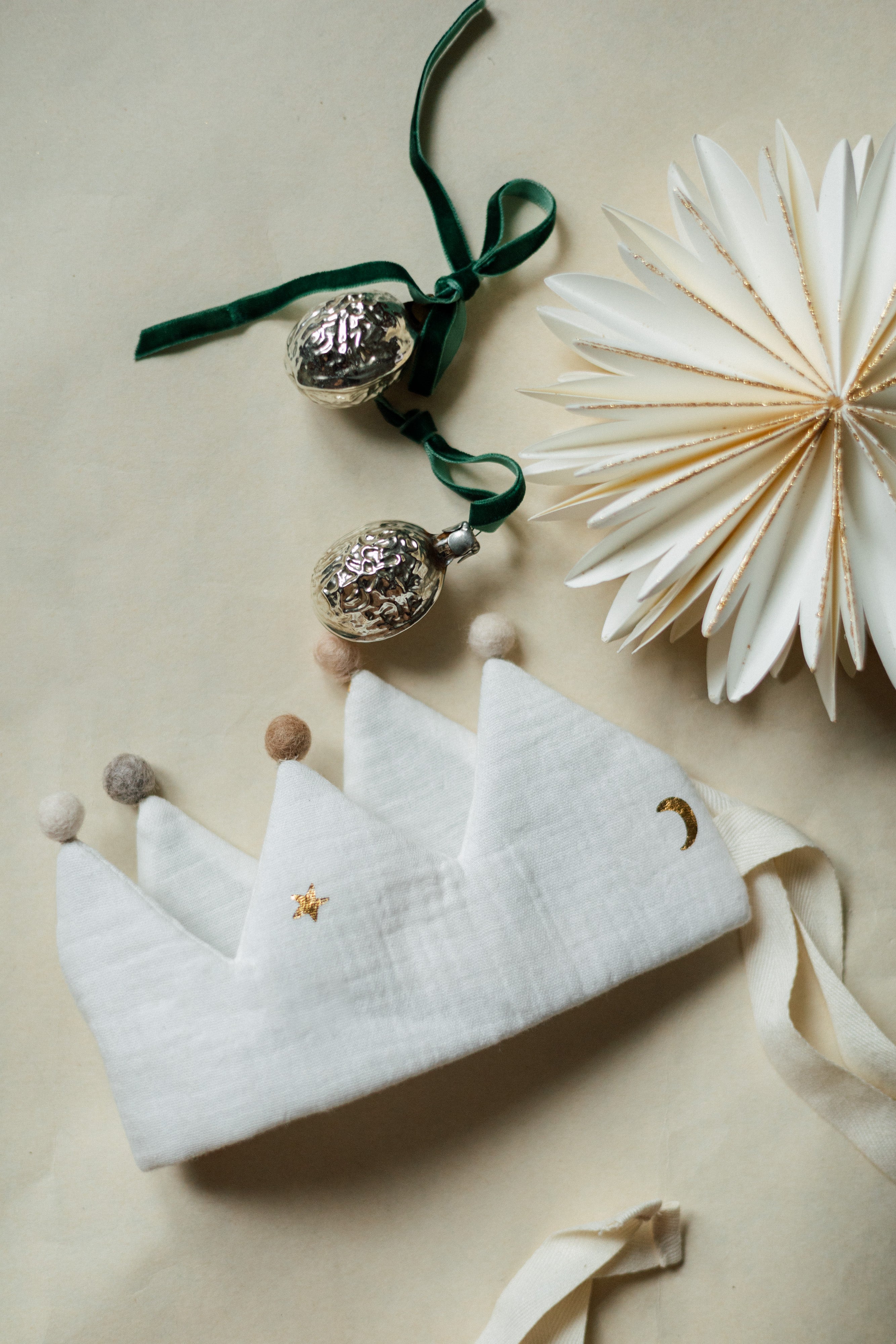 Kruunuja löytyy kahta eri värivaihtoehtoa: white ja taupe, molemmissa kauniit kultaiset kuu ja tähdet. 👑