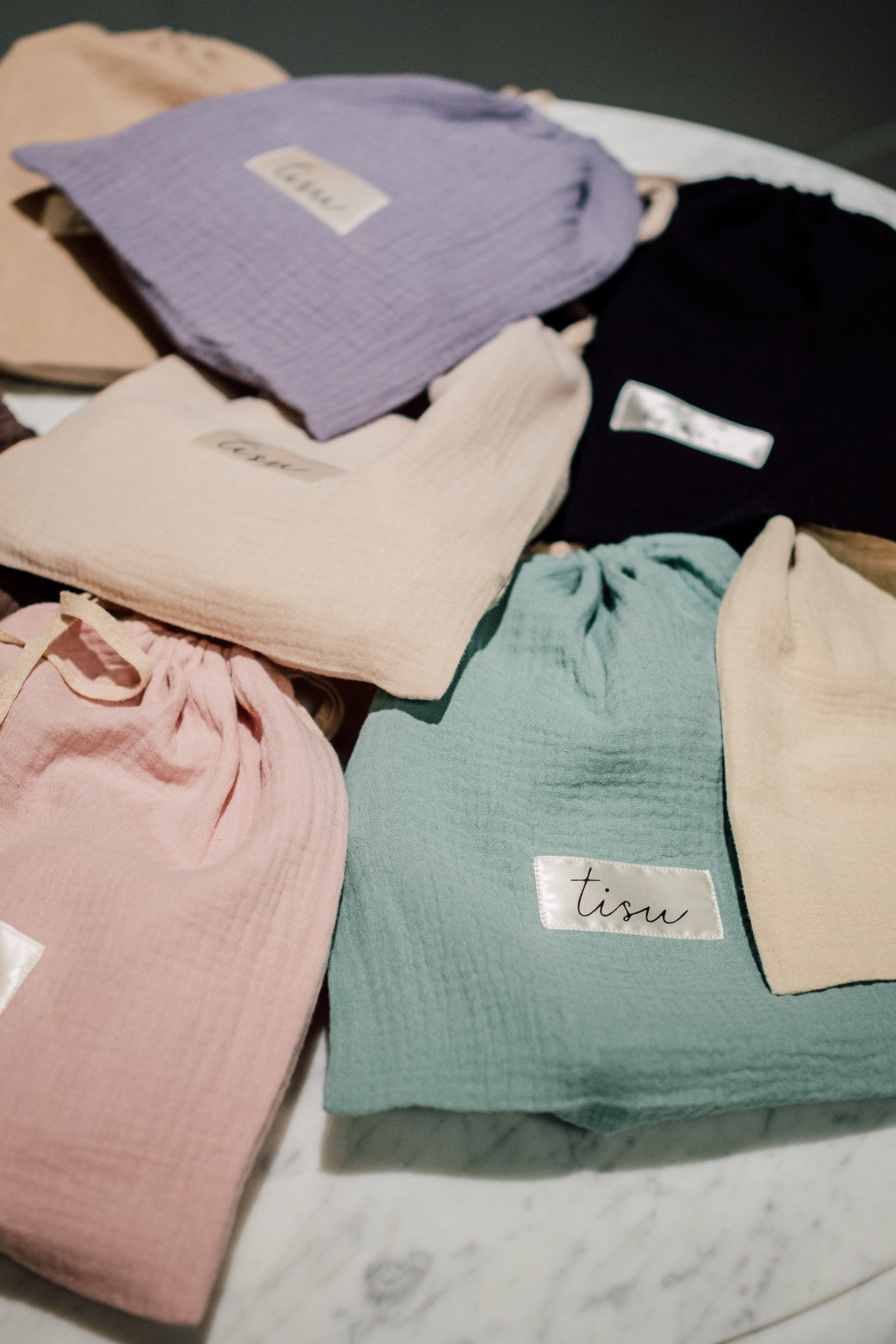 TISU-imetyssuojat valmistetaan käsityönä musliinipuuvillasta, joka on ilmava ja kevyt myös kesän lämmössä. TISU toimii myös erinomaisena vaunu-/kaukaloverhona. Vaunuverho suojaa nukkuvaa vauvaa tuulelta, liikenteen melulta sekä saasteilta. Vaunuverho toimii myös aurinkosuojana. Vaunuverhon kanssa kannattaa huolehtia riittävästä ilmanvaihdosta.
