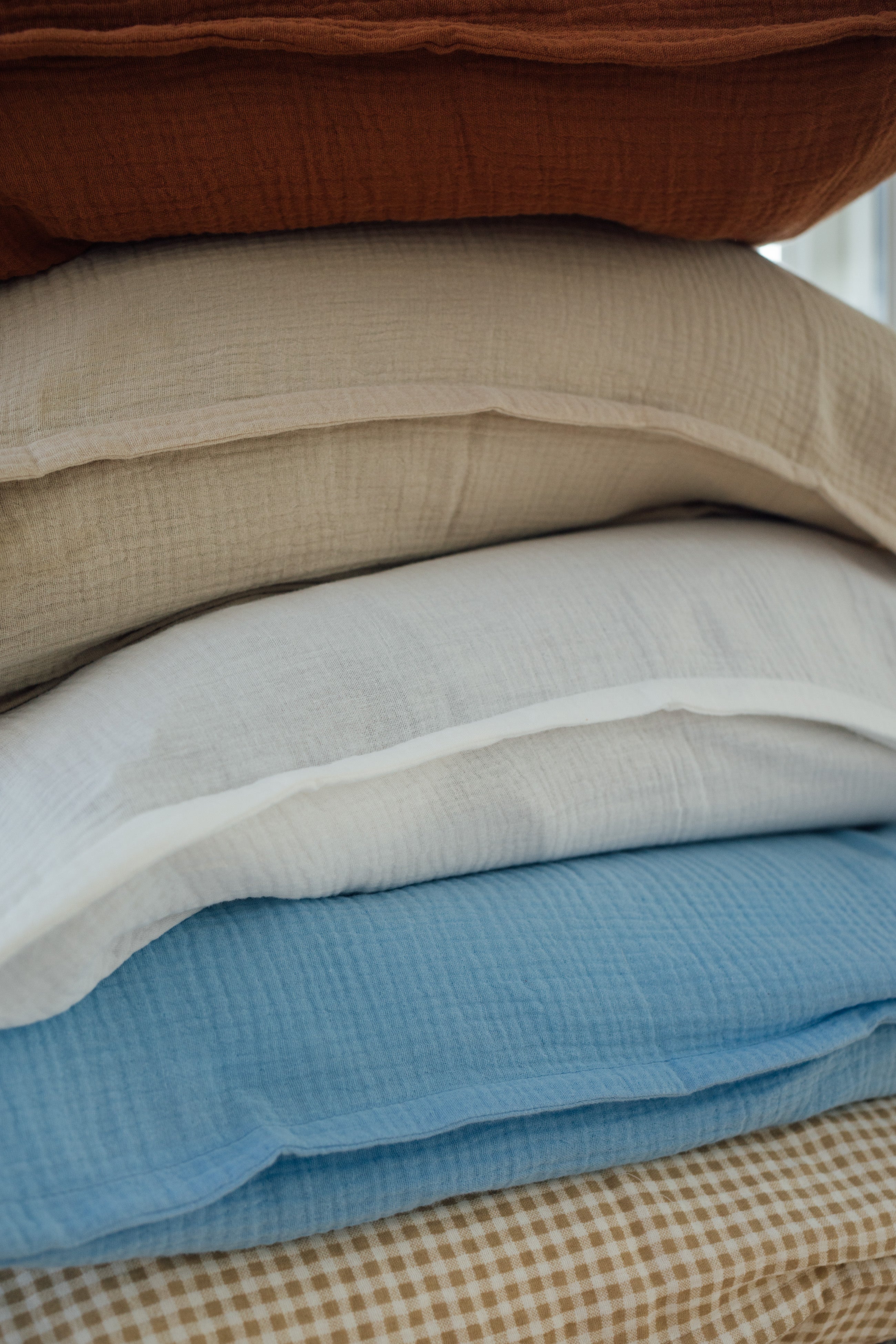 Tyynyliinat myös erikseen - TISU musliinityynyliinat voit hankkia myös erikseen juuri oikeassa koossa. Näin voit täydentää pussilakanasettiäsi tai lisätä sänkyyn pehmeyttä.