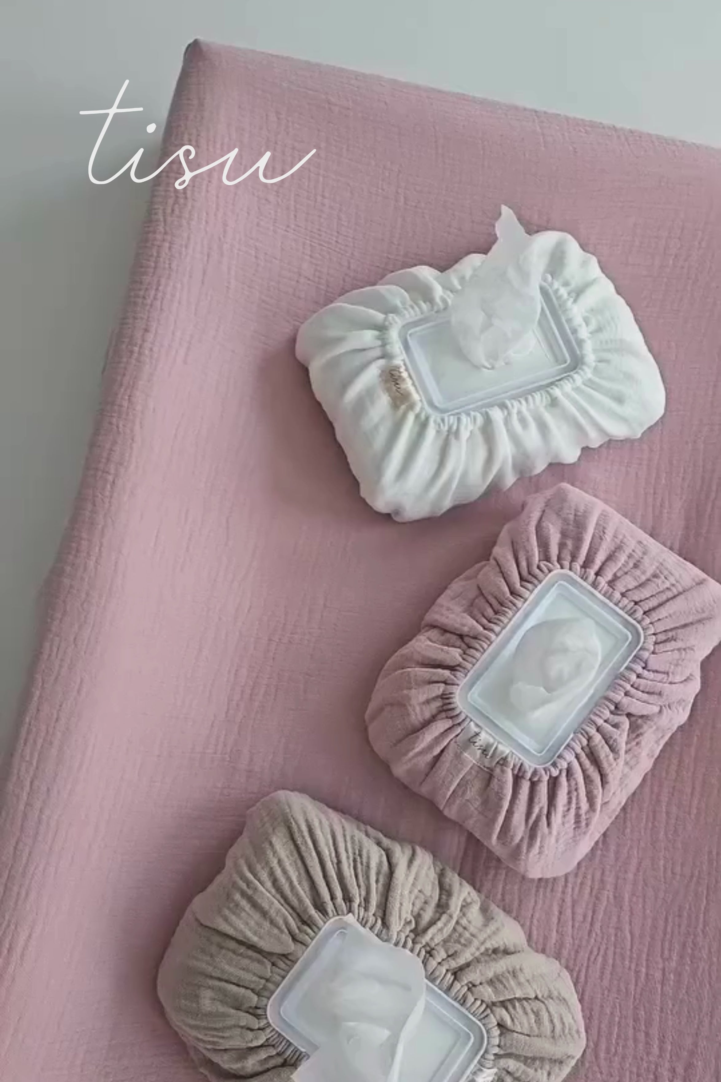 Superkauniit kosteuspyyhepakettien päälliset ovat Valmistettu samasta pehmeästä musliinista ja samoissa kauniissa väreissä kuin TISUn hoitoalustan päälliset. Yhdessä ne luovat ihanan viimeistellyn ja tyylikkään yksityiskohdan vauvan hoitopisteelle! 🐣